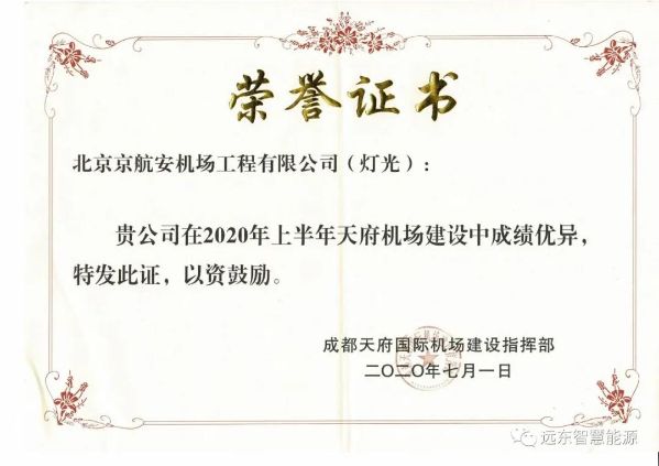 Recently, Beijing Jinghang'an Airport Engineering Co., Ltd. (referred to as "Jinghang'an"), a subsidiary of Far East Smart Energy Co., Ltd. (stock code: 600869, abbreviated as "Smart Energy"), received certificates of honor and congratulatory letters from the Chengdu Tianfu International Airport Construction Headquarters, congratulating Jinghang'an on smoothly advancing construction progress and achieving outstanding results in the Chengdu Tianfu International Airport project.